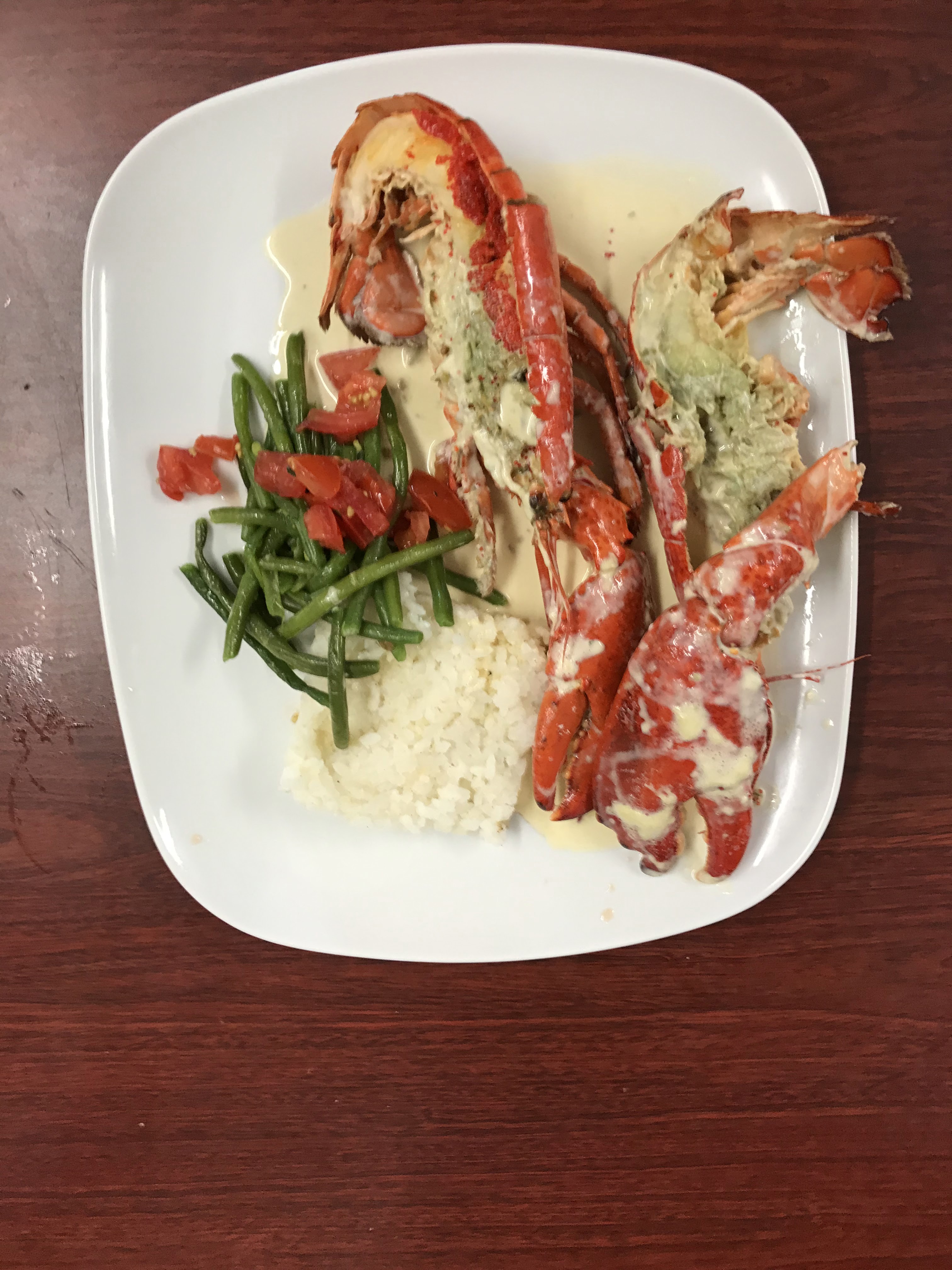 menu reservé depuis 2 mois. on a eu du riz à la place de p. de terre grenailles et écrasé de p. de terre. sinon très bon. service un peu lent. soirée musicale au top années 80
