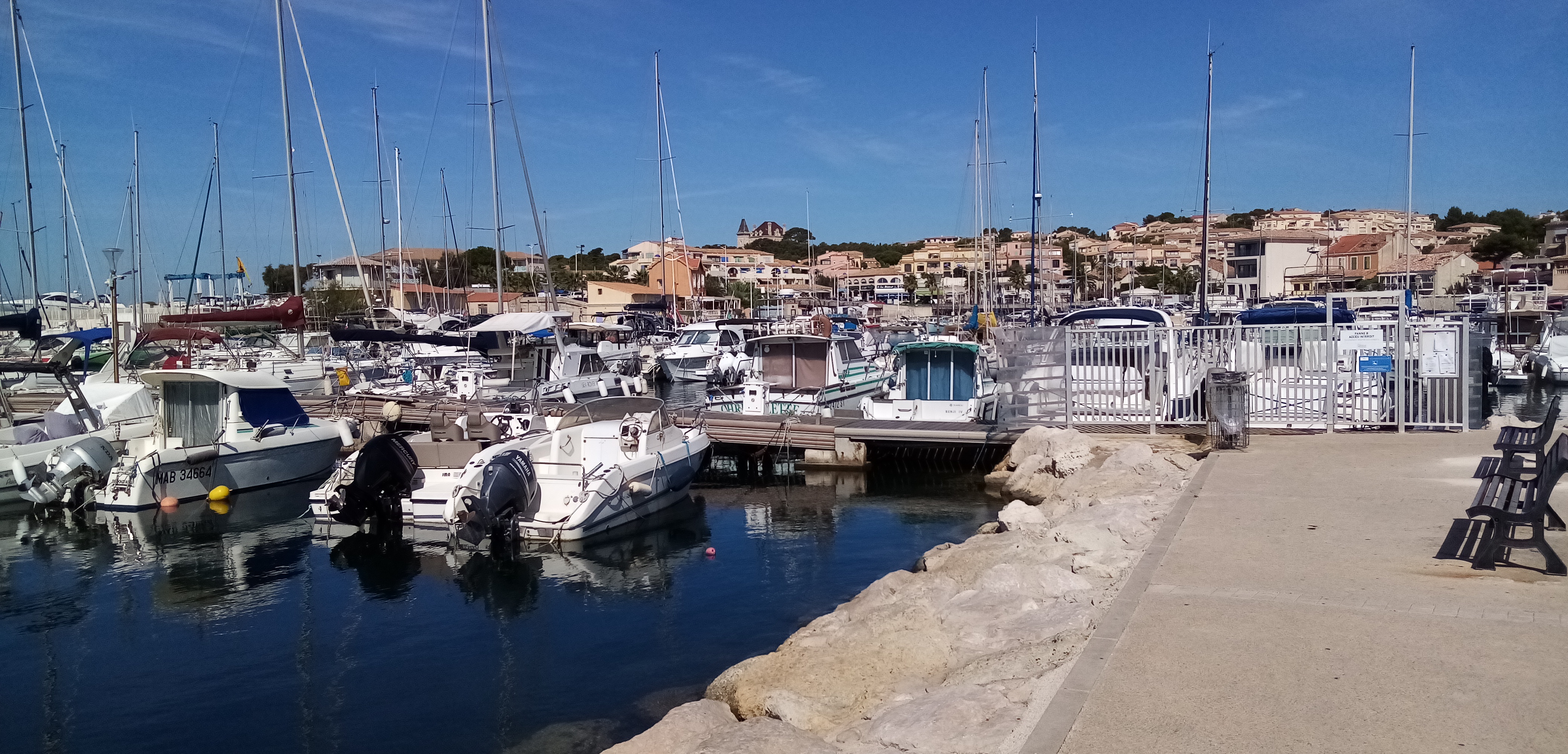 On prends toujours du plaisir à être sur le port de Sausset les Pins . Et sa promenade qui longe la mer est une pure merveille pour les yeux et le psychisme. Un seul problème en cette période les panneaux qui devraient indiquer les yeux avec et sans masques ils ne sont pas très grands .